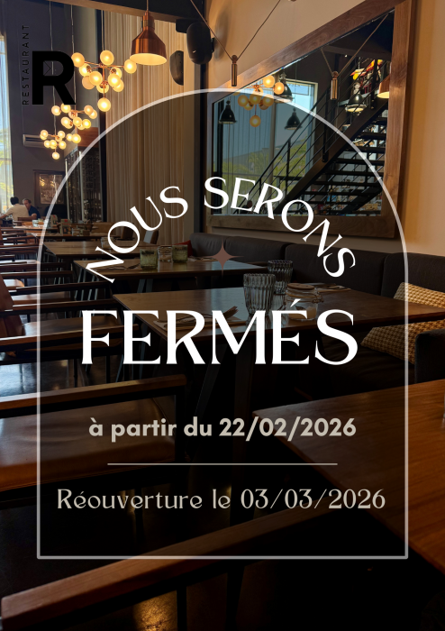 Le R‑Restaurant sera fermé du 25 décembre au 5 janvier inclus pour une pause bien méritée.